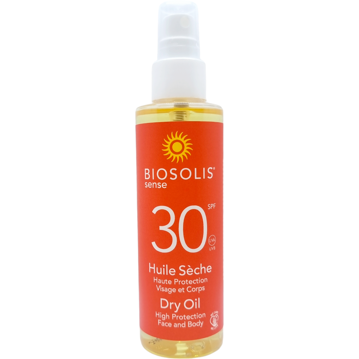 Datorită celor mai recente biotehnologii, marca belgiană de protecție solară BioSolis utilizează ingrediente active de calitate, curate și fără poluanți, care respectă pielea și planeta noastră. Compus din uleiuri vegetale și filtre minerale, Ulei de corp uscat cu protecție solară SPF30 oferă protecție naturală UVA/UVB. Poate fi aplicat pe corp și pe păr.